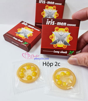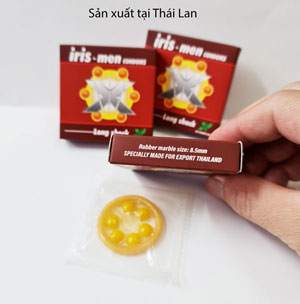- Bao cao su Iris-Men 6 bi to tướng là một trong những dòng bao cao su bi bán chạy nhất trên thị trường hiện nay không chỉ về tính năng bcs có bi to xung quanh đầu bao mà trong bao cao su 6 bi Iris-Men có chứa hàm lượng nhỏ chất Benzocanein giúp "Lâu ra" hỗ trợ kéo dài thời gian quan hệ cho nam giới.