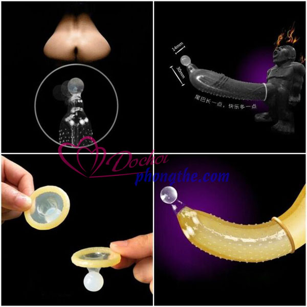 - Bao cao su bi to được thiết kế độc đáo với bề mặt sần với các chấm bi nhỏ và đặc biệt có một viên bi lớn ở đầu lăn massge âm đạo và vùng nhạy cảm của bạn tình, làm cho bạn tình nhanh chóng đạt đến cao trào và nâng độ cao trào lên đến mức cực đỉnh.