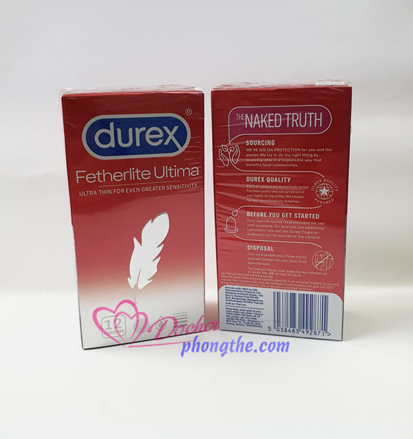 - Bao cao su Durex Fetherlite Ultima cực siêu mỏng vừa vặn . Thiết kế đặc biệt với size 52 mm phù hợp với người Á Đông