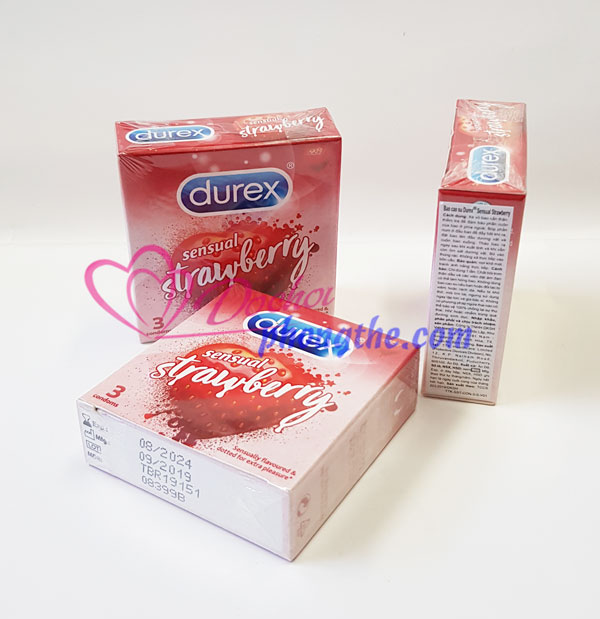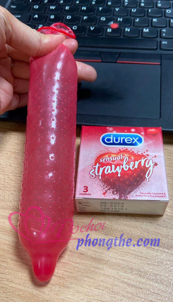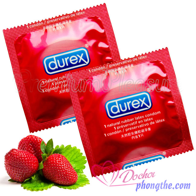 - Bao cao su Durex Strawberry có mùi hương Dâu tạo cảm giác dễ chịu , có màu giống quả dâu rất quyến rũ