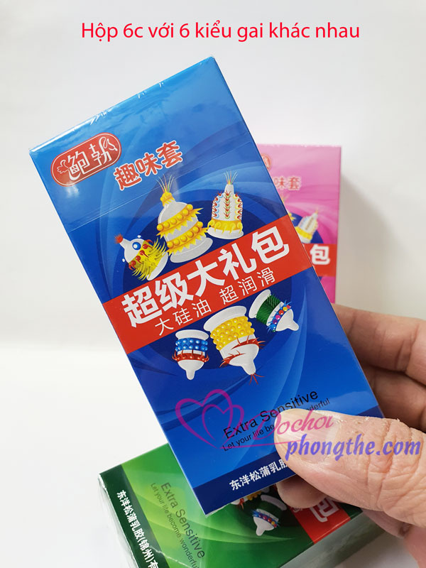- Quy cách: Hộp 6 chiếc gồm 6 kiểu gai khác nhau rât thú vị