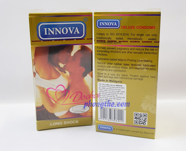 - Bao cao su Innova Long Shock được sản xuất từ cao su thiên nhiên , được test điện tử nghiêm ngặt ,tiêu chuẩn sản xuất ISO 4074 : 2012 đảm bảo an toàn khi sử dụng .