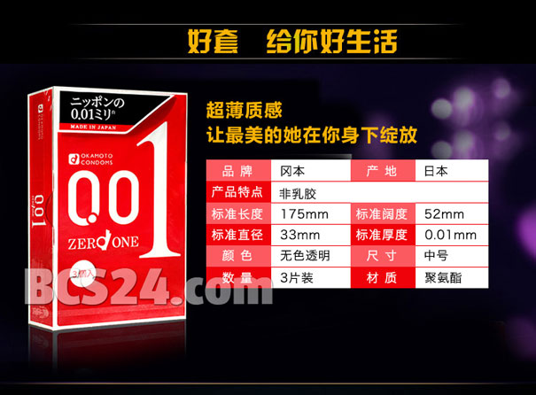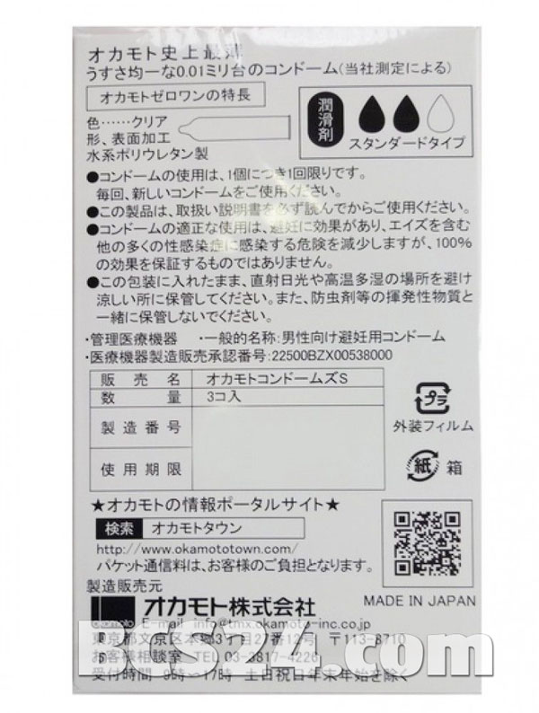 * Thông số kỹ thuật cuảt bao cao su Okamoto Zero One 0,01mm :