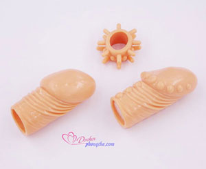Bộ bao đôn đầu dương vật cùng vòng gai silicone mềm mại