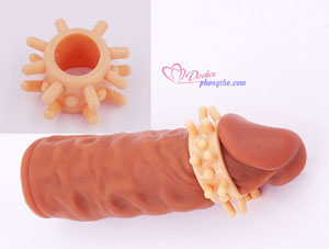Bộ đôn đầu dương vật cùng vòng gai với thiết kế hoàn toàn từ silicone siêu mềm mại, bộ đôn sẽ khiến cho các nàng sung sướng và cảm giác tột đỉnh khi chất liệu mềm mại của nó giống như thật với cậu nhỏ của các anh. Ngoài ra thiết kế có thêm vòng gai giúp cho việc cố tinh phần gốc dương vật được cải thiện đáng kể, nhờ đó mà các nàng cảm thấy hoan lạc và được trải nghiệm cảm giác sung sướng gấp đôi.