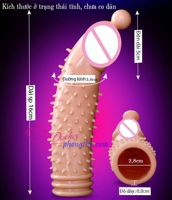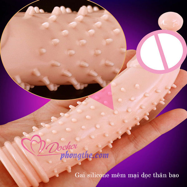 - Bao đôn dên đầu bi siêu gai đôn dài 5cm là sản phẩm thay thế bao cao su thông thường nhưng có thể sử dụng được nhiều lần. Với thiết kế khá độc đáo toàn thân phủ đầy gai, phía dưới là lớp gân sần giúp kích thích cực đã lên thành âm đạo khiến chị em sung sướng và vô cùng thích thú. Sản phẩm không những giúp cho chị em đạt được khoái cảm mong muốn mà các anh cũng cảm giải tỏa phần nào.