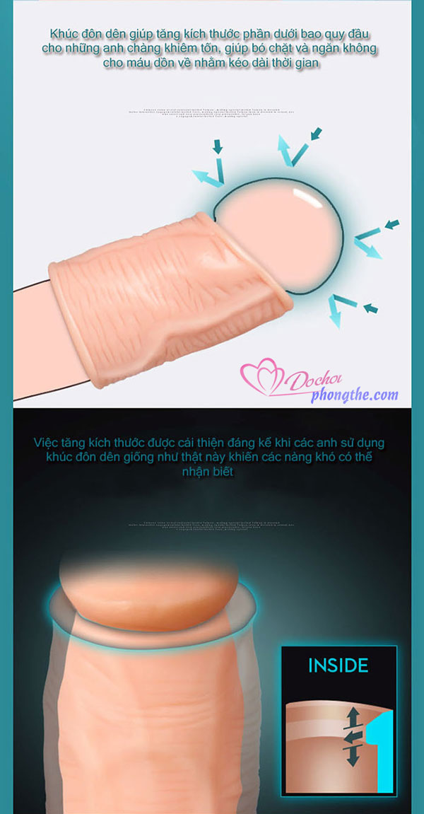 - Bộ vòng đôn dên khúc giữa silicone tăng kích thước dương vật thuộc dòng bao cao su đồ chơi giúp cải thiện sinh lý tuyệt vời cho các quý ông một cách tức thì nhanh và hiệu quả. Ngoài tác dụng tăng kích thước dương vật ở những anh chàng có kích thước "cậu nhỏ" khá khiêm tốn hoặc ở những anh chàng trở ngại lớn nhất là nhanh xuất tinh sớm cũng được khúc đôn dên cải thiện đáng kể. Việc đeo vòng đôn dên khúc giữa giúp "cậu nhỏ" bị bo tròn và gần như thắt lại giúp cho việc kiềm chế sự mẫn cảm cực nhạy của cậu nhỏ được chậm lại.Vì thế mà các anh có đủ thời gian chinh chiến hơn, có được sự sung mãn tuyệt vời hơn khiến nàng sung sướng tột cùng khi lên đỉnh.