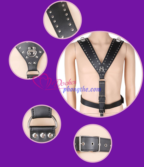- Bộ đồ bạo dục Cosplay da với khóa treo dương vật được thiết kế hoàn toàn từ da cao cấp, không mùi, chất liệu da mềm mại thân thiện với làn da. Mặt ngoài da mịn bóng đước trang trí bởi lớp đinh tán trải dọc từ trên xuống giúp nó không quá đơn điệu chỉ một màu đen, phần mặt trong với lớp nỉ mịn hơn cho tiếp xúc với da mềm mại và thoáng khí. Khóa dương vật độc đáo, khá thú vị cho những anh chàng yêu thích trò chơi "Boss & Slave" với nửa kia của mình.