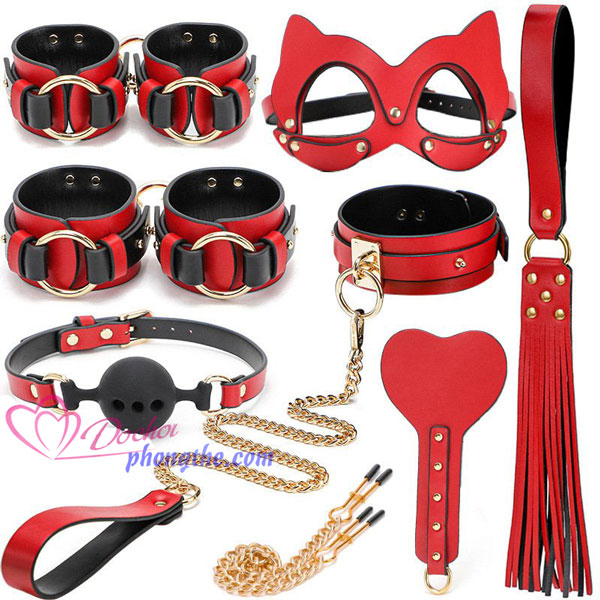 - Bộ đồ chơi tình yêu bạo dâm 8 món cực đẹp gồm: Mặt nạ, trói chân, tay, khóa hàm, kẹp ngực, phết mông, roi, xích cổ. Bộ sản phẩm giúp bạn tình cuốn hút và hấp dẫn hơn, được sở hữu và được làm chủ giúp các bạn dễ thăng hoa và đạt cực khoái