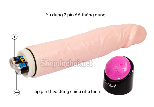 * Hướng dẫn sử dụng : Xoay mở phần chuôi dương vật giả cầm , lắp 2 viên pin AA theo chiều ngược nhau sau đó vặn chuôi lại cho vào nấc khóa đã thiết kế sẵn . Xoay phần màu tím theo chiều kim đồng hồ để chỉnh mức độ rung mạnh , yếu theo ý muốn .