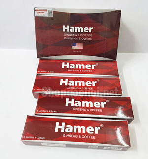 - Kẹo ngậm Hamer Mỹ được chiết xuất từ nhân sâm và các thảo dược quý hiếm tự nhiên, an toàn cho người sử dụng không chỉ cung cấp các dưỡng chất cần thiết cho cơ thể. Hơn thế, nó còn có tác dụng tăng cường khả năng ham muốn ở phái mạnh, hỗ trợ cải thiện các triệu chứng rối loạn cương dương ở nam giới và kéo dài thời gian quan hệ. Vì thế, nó được xem như một thứ “thần dược” được gọi là "Kẹo đổi gió" trong vấn đề hỗ trợ sinh lý cho cánh mày râu.