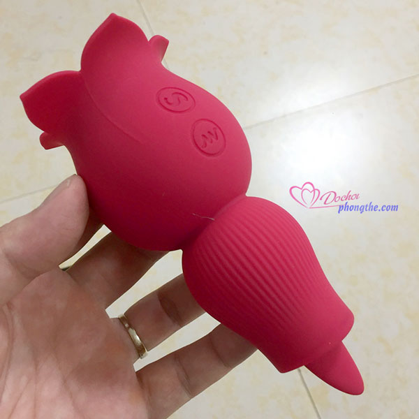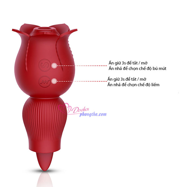- Máy bú liếm hình bông hồng có thể dùng cả 2 đầu cho việc mát xa khu vực âm đạo, vùng kín hay bất cứ điểm nhạy cảm nào trên cơ thể như ngực, đầu ti, tai,... Với đầu bú mút được ngụy trang khéo léo bởi những cánh hoa hồng chúm chím vừa mới nở, tựa như nàng thiếu nữ 18 đôi mươi đang e ấp chờ bung nở. Đầu còn lại thiết kế với lưỡi liễm nhỏ xinh rung lên bần bật rât linh hoạt giúp kích thích môi âm đạo khiến nàng sung sướng không ngớt.