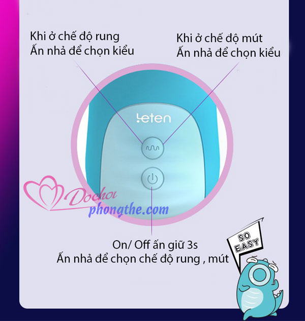 - Máy rung bú mút Leten Little Raptors Sucking có nhiều màu sắc bắt mắt, đáng yêu. Sẽ chẳng ai có thể ngờ nó vừa có thể làm đồ trang trí lại có thể giải tỏa tuyệt vời cho chị em nhất là trong màn dạo đầu khơi dậy chuyện ấy. Miệng hút có thể mát xa đầu ti, âm vật, thân rung có thể mát xa toàn thân nhằm kích thích hầu hết những dây thần kinh cảm khoái. Cảm giác nâng nâng luôn là những điểm gây sự thích thú và khơi dậy niềm vui khao khát quan hệ tình dục ngay lúc đó.
