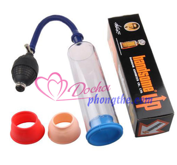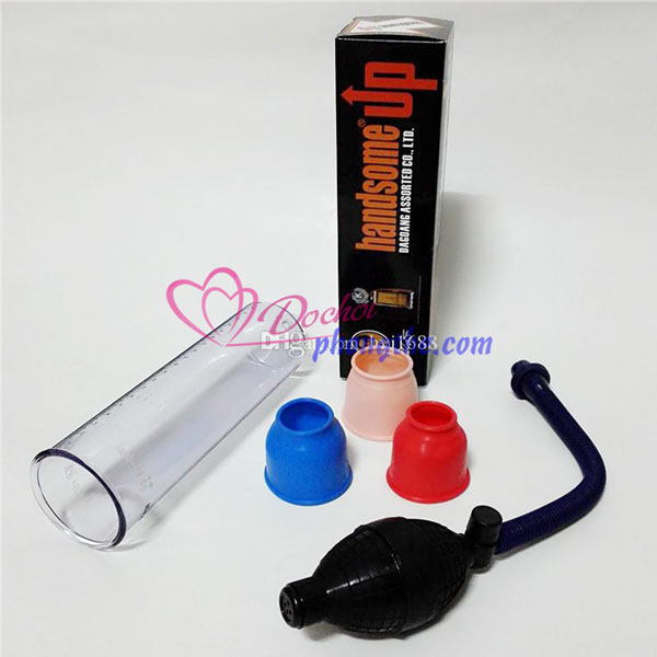 - Bơm hút dương vật Handsome Up hàng nguyên hộp gồm :1 ống hút platic siêu bền có thước trên thân ống để tiện theo dõi quá trình tập luyện , 3 vành cao su kếp bền bỉ kích cỡ khác nhau , 1 bóng bơm hút có van điều hòa .