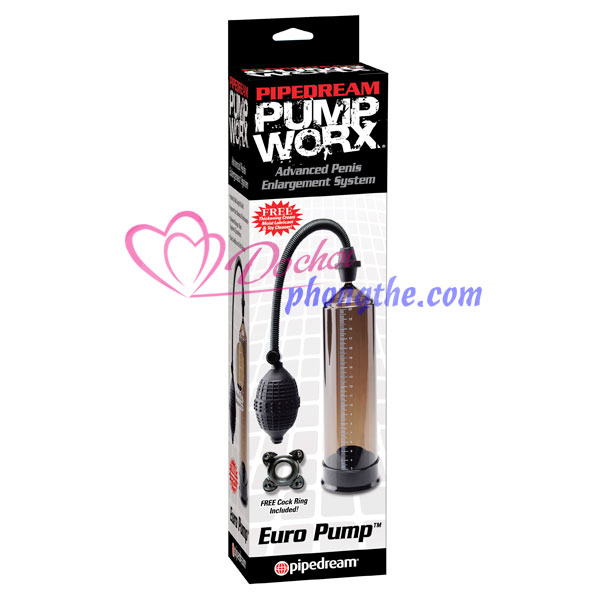 - Máy bơm tăng kích thước dương vật Pump Worx bao gồm một ống bằng nhựa cứng có hình trụ tròn được gắn liến với một bơm tay. Trên bơm tay vó một van để bạn xả hơi điều chỉnh áp xuất.
