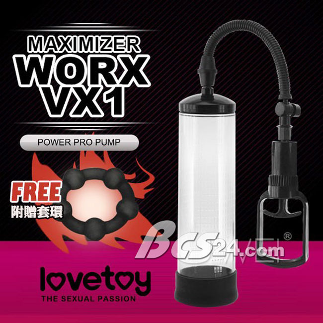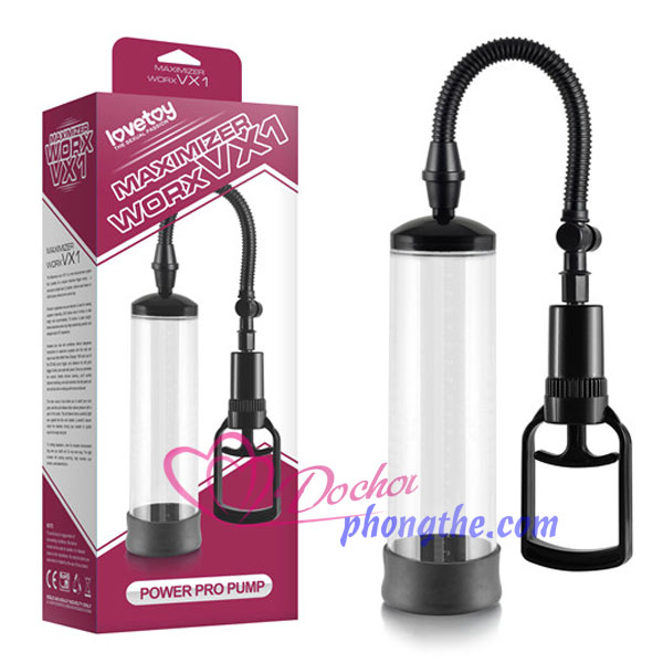 - Dòng máy tâp dương vật LoveToy Maximizer Worx VX1 với cần kéo tay tự chủ lực hút mạnh mẽ chất liệu ABS và silicon, van xả đạt tiêu chuẩn chất lượng EC - Châu Âu kèm theo bộ máy tập có thêm miếng doăng bằng cao su mềm mịn tạo sự kín hơi cho các anh tận hưởng cảm giác thăng hoa trong quá trình tập luyện ngoài ra sản phẩm của hãng còn có thêm vòng silicon đeo dương vật giúp giữ cương cứng được lâu hơn và gel bôi trơn đi kèm.