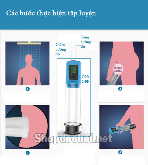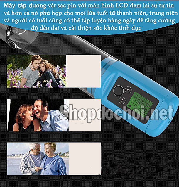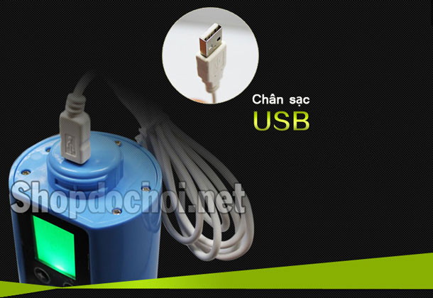 - Máy tập LCD sử dụng nguồn điện cắm sạc trực tiếp. Sau khi sạc đầy PIN, gắn thêm vòng ron hoặc miếng âm đạo giả (đi kèm theo sản phẩm giúp bảo vệ dương vật khi sử dụng.
