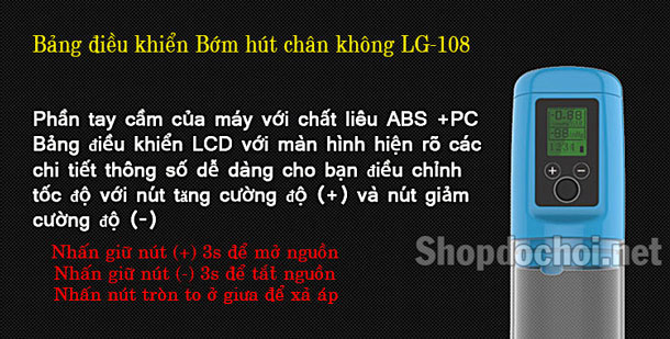 - Được sản xuất theo công nghệ hiện đại của Nhật, máy tập to dài dương vật tự động Luoge LG-108 hoạt động theo cơ chế như máy bơm hút chân không. Khi dương vật nằm trong môi trường chân không, "cậu nhỏ" tha hồ tập luyện đồng thời tăng cường lưu thông máu tới các mạch máu bên trong dương vật làm cho dương vật to hơn trong thấy.