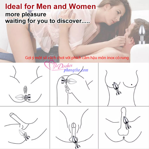 - Phích Inox cắm hậu môn có rung đa tần thiết kế với điều khiển xa không dây lên tới 10m, 7 tần số rung hiện đại từ nhẹ nhàng, vuốt ve, mơn trớn cho tới mạnh mẽ cao trào là 7 tầng cảm xúc giúp bất kể ai ngay lần đầu sử dụng cũng bị lôi cuốn. Cảm giác vuốt ve khi trêu ghẹo phần ngực của nàng hay kích thích bên ngoài cậu nhỏ, cho tới phần bìu làm cho các anh khó có thể cưỡng lại được sự hưng phấn ấy. Cảm giác được dồn lên tới đỉnh điểm khi nó đi sâu vào bên trong hậu môn kết hợp với sức rung bần bật khiến ngay cả nàng hay các anh cũng phải thốt lên vì QUÁ ĐÃ!