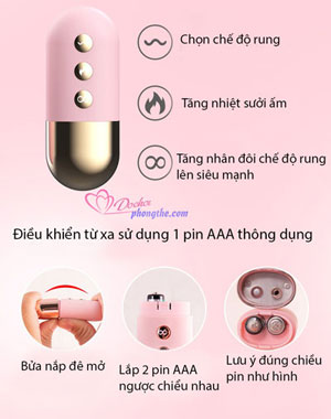 - Pin: Pin Lithium polymer cho trứng rung và pin AAA cho điều khiển.