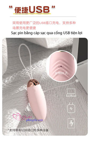 - Xoay phần nắp màu vàng ở điều khiển để lắp pin, đối với trứng rung cắm sạc vào lỗ nhỏ có in chữ "DC" để sạc pin. Thời gian sạc 1h30.