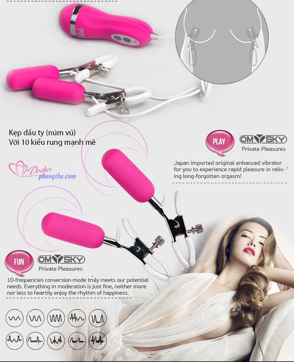 - Trứng rung kẹp núm vú, đầu ty mát xa ngực Omysky là đồ chơi tình yêu kích thích đầu vú gồm 2 kẹp trứng rung với nhiều tổ hợp rung mát xa với các tần số dao động kích thích khác nhau giúp bạn kích thích hưng phấn, khoái lạc tột đỉnh đem lại cảm giác đê mê sung sướng mới lạ mà bạn chưa biết đến bao giờ, giúp bạn lưu thông máu, khí huyết dễ dàng để bạn tận hưởng niềm vui khoái lạc trọn vẹn